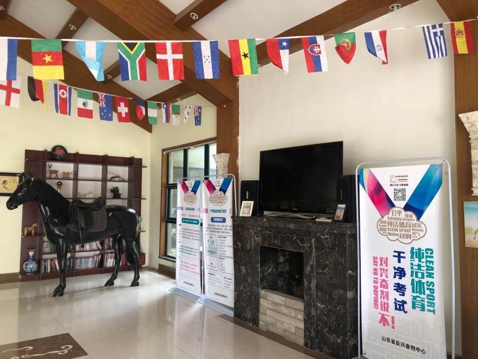 为安全起见,马术考点将兴奋剂宣传门型架布置在室内,让家长和考生在待考期间都能直观感受和体验,把兴奋剂相关知识渗透在整个考试过程中。