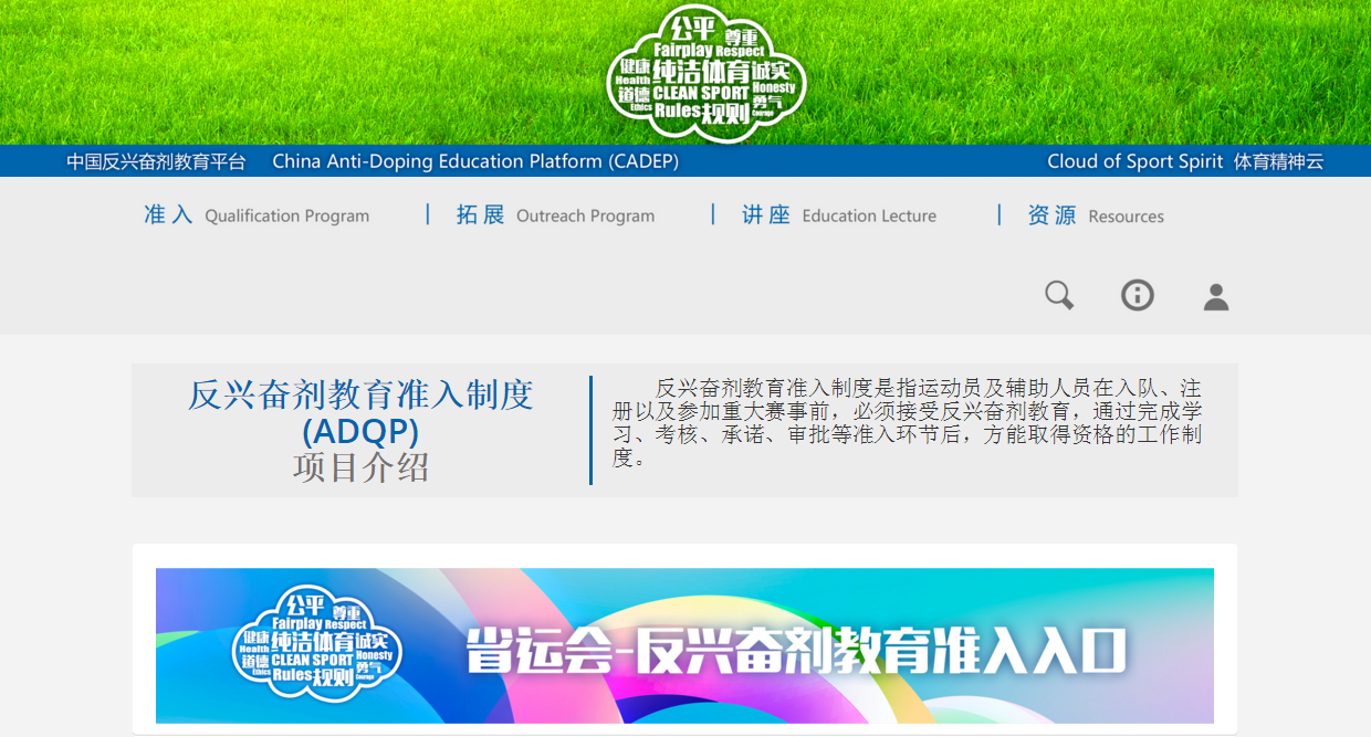 根据工作要求,参加今年省运会的运动员及辅助人员均须登录中国反兴奋剂教育平台(CADEP)在线完成反兴奋剂知识学习、考试、承诺等准入工作五项环节。同时,准入工作实施期间,参赛单位还可登录平台资源专区下载准入手册、课件、视频等资料。