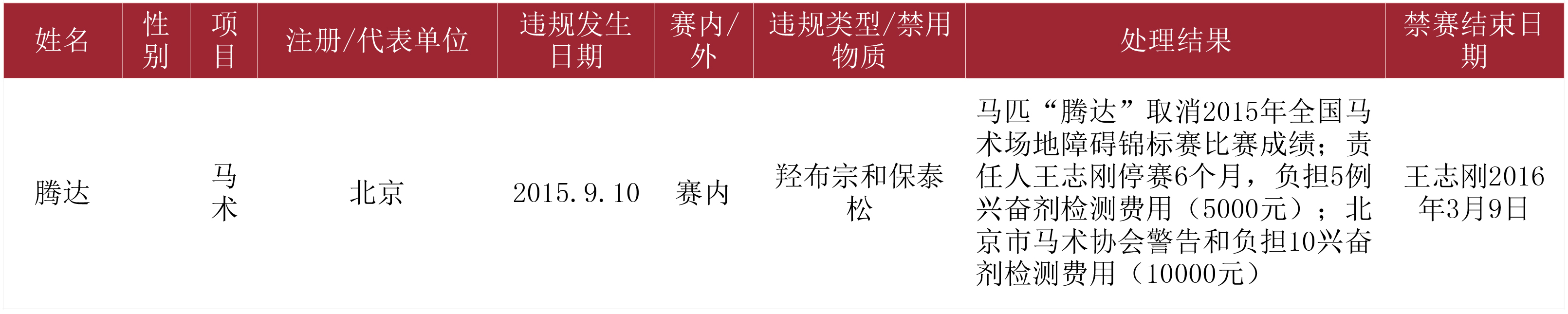 近日,中国马术协会对参赛马匹“腾达”兴奋剂违规做出处罚决定。