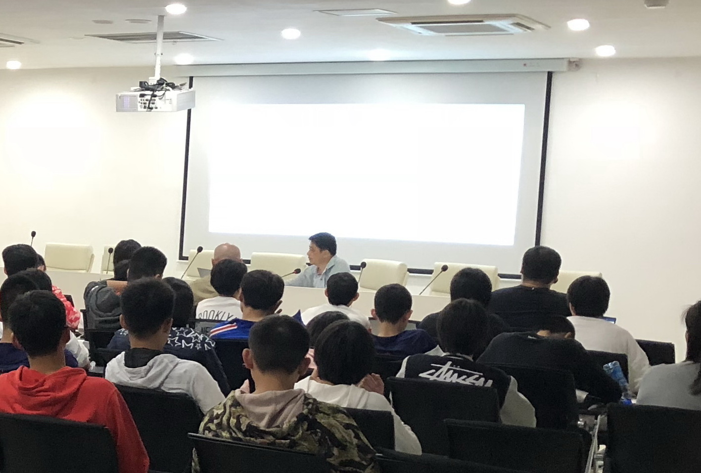 2019年4月19日晚,参加全国青年游泳集训的19个单位的106名运动员和20名教练员忘记疲劳,齐聚杭州上虞游泳中心会议室,饶有兴趣地聆听游泳中心反兴奋剂办公室兰京主任带来的一堂生动的反兴奋剂教育讲座。