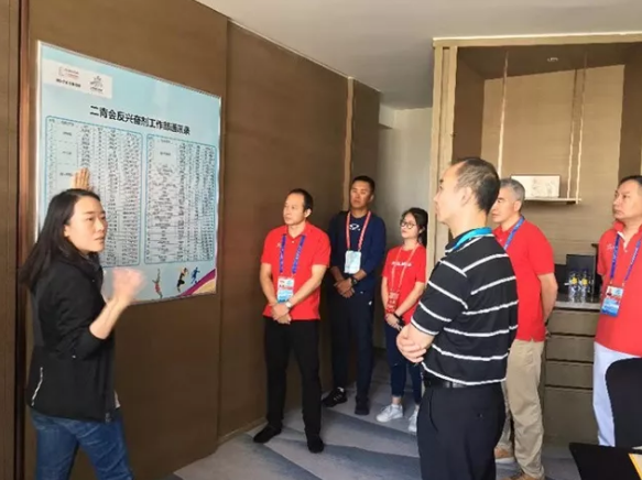 8月18日上午,浙江省体育局副局长吕林率浙江二青会团部官员一行十人参观了二青会反兴奋剂工作部运行指挥中心,全面了解大型综合性运动会反兴奋剂工作的系统运行工作。