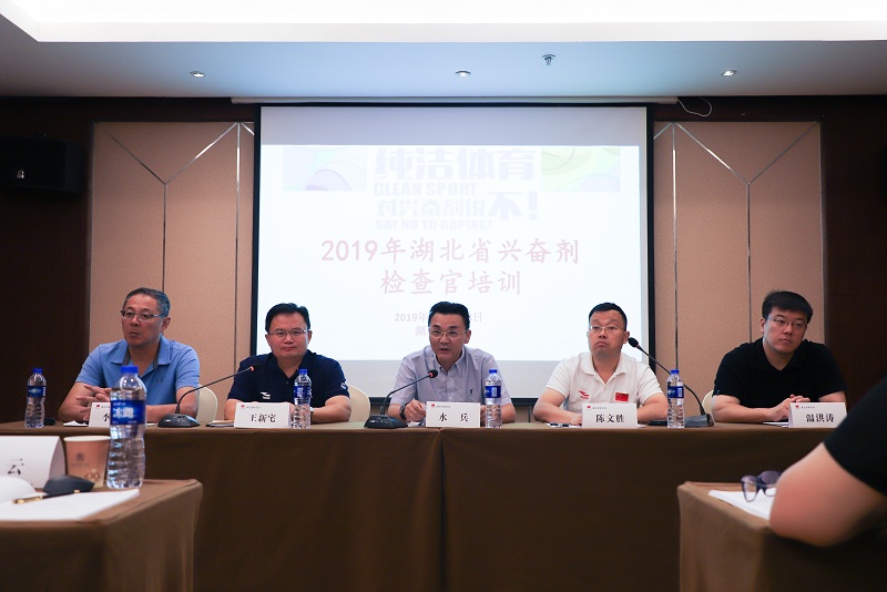 为加强湖北体育反兴奋剂工作的力度,建设一支专业化反兴奋剂工作的队伍,2019年湖北省兴奋剂检查官培训班在武汉市九州通衢大酒店开班。湖北省体育局副局长水兵作动员讲话、国家体育总局反兴奋剂中心检查处处长王新宅、湖北省体科所所长李健出席,开班仪式由湖北省体育局竞体处处长陈文胜主持。