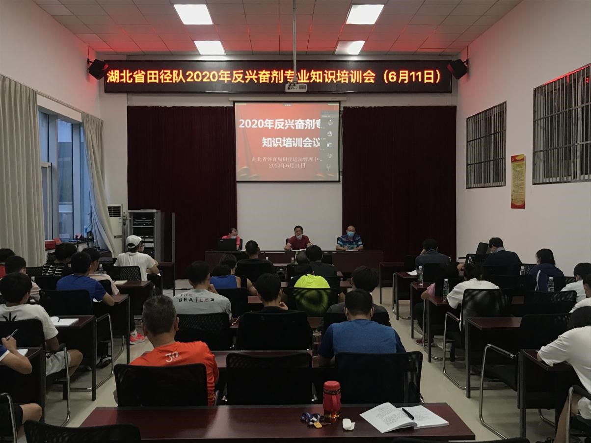 为贯彻落实国家体育总局和省体育局对兴奋剂“零容忍”、“零出现”的要求, 6月11日晚,省田径中心组织全员参加“湖北省田径队2020年反兴奋剂专业知识培训会”,强化反兴奋剂意识,夯实理论基础,筑牢思想防线。
