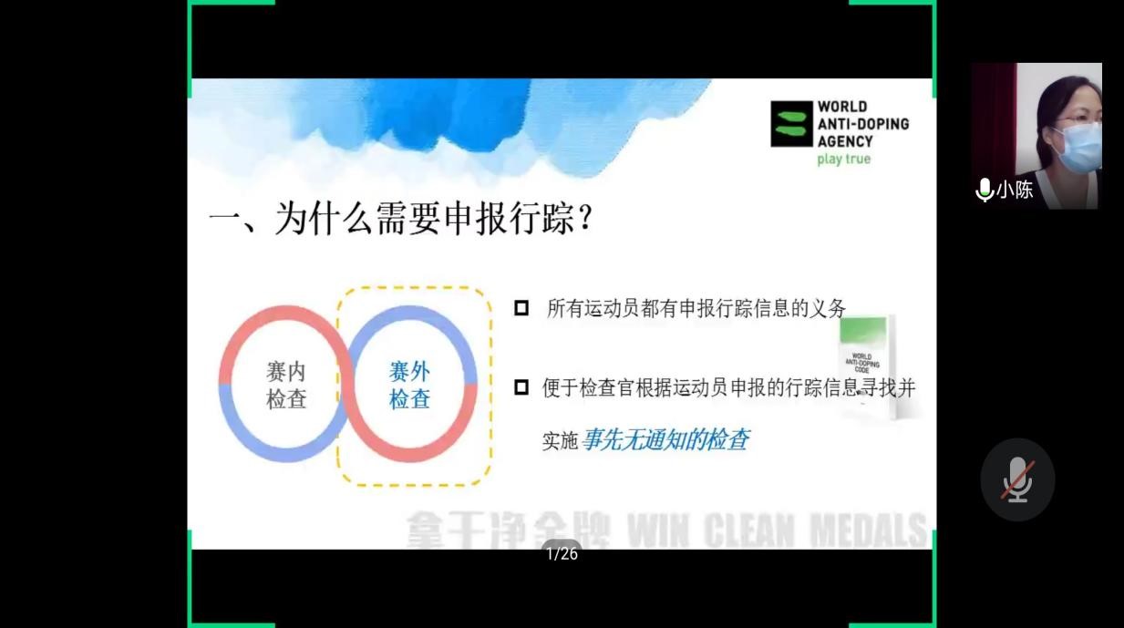今年5月跳出近五年来中国女子三级跳最好成绩,一直在广州训练的湖北现役国家队队员杨扬通过网络参加了此次培训会。“通过学习,充实了自己反兴奋工作方面的专业知识,明白了作为专业运动员的责任,树立了‘拿干净金牌’的意识。”她说。作为2020年度兴奋剂检查库的新人,在听完专家讲授后,杨扬明白了行踪申报工作的重要性,并且通过此次学习,掌握了如何准确无误进行自我行踪填报。