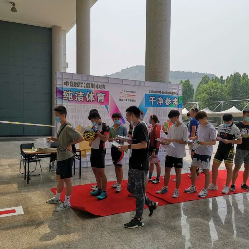 自行车考试点在室外布置了大型展板、门型架,在考生排队入场的区域,省反兴奋剂中心工作人员还为他们分发了宣传单页及知识手册,让考生在等待考试空当也能学习和了解有关反兴奋剂知识。此考点也设立了兴奋剂检查站,以抽检的方式对考生进行了兴奋剂检查,将“纯洁体育,干净参考”落到实处。
