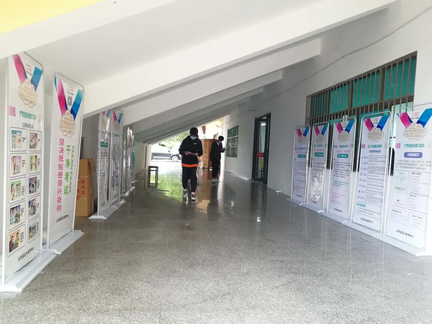 为安全起见,马术考点将兴奋剂宣传门型架布置在室内,让家长和考生在待考期间都能直观感受和体验,把兴奋剂相关知识渗透在整个考试过程中。