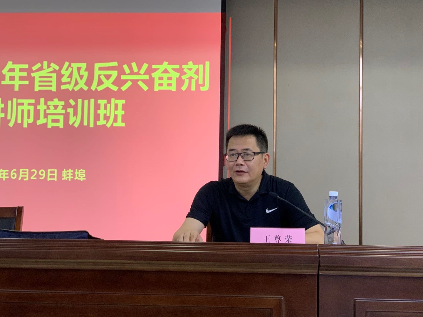 为深入贯彻学习习近平总书记对反兴奋剂工作的重要指示批示精神,落实《反兴奋剂工作发展规划(2018-2022)》,强化安徽体育系统反兴奋剂工作专业人才培养和宣传教育队伍建设,安徽省反兴奋剂中心于6月28日至30日在蚌埠市举办安徽省2020年省级纯洁体育教育讲师培训班。省反兴奋剂中心主任、省体科所所长潘家武,省体育局备战办副主任袁则新,蚌埠市体育局副局长周青山等领导出席了开班仪式。会议由省体科所副所长、省反兴奋剂中心副主任王尊荣主持。省体育局各运动训练管理中心、各市体育行政部门及安徽省部分高校的相关人员等60余人参加了此次培训。