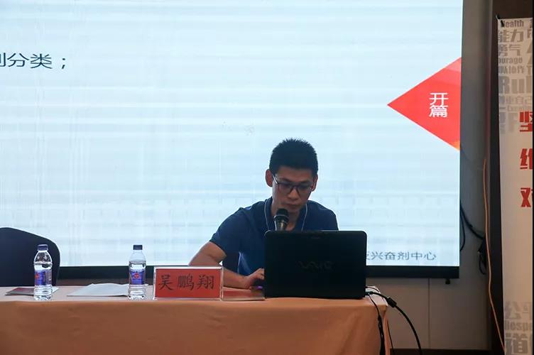 随后,浙江省反兴奋剂中心省级讲师吴鹏翔开展反兴奋剂教育知识宣讲。他主要从兴奋剂的种类、兴奋剂的危害、兴奋剂的管制以及兴奋剂的预防等4个方面进行了讲解,并通过观看视频案例、讲解现实案例等方式加深全体人员的反兴奋剂意识。