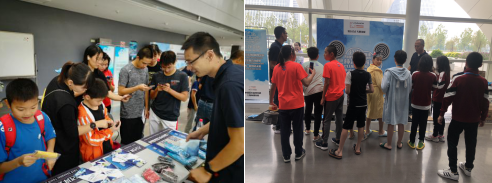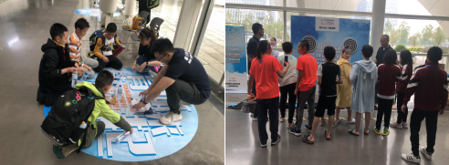 在活动现场,分别设置了反兴奋剂知识答题、扔飞镖、扔瓶子、拍照发朋友圈和在主题板上签名的小游戏,吸引青少年运动员们的眼球。