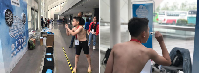 扔飞镖游戏环节非常受小运动员们的喜爱,虽然大家都是游泳健将,但在扔飞镖这项运动中,他们展现了非凡的运动天赋,“正中靶心”根本就难不倒这些未来的运动之星!