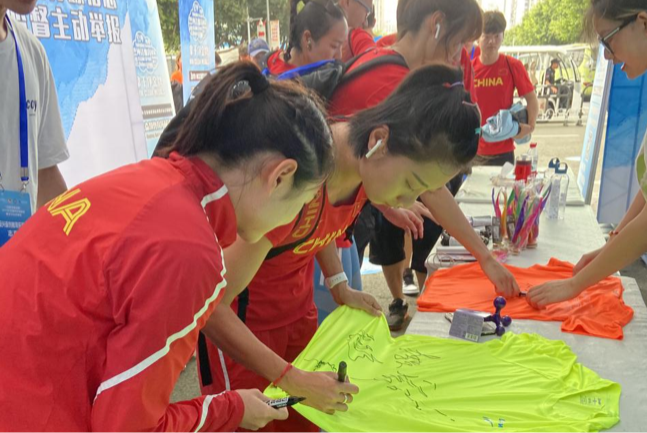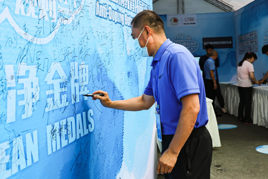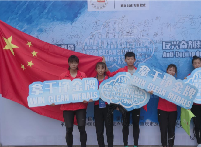 反兴奋剂拓展教育活动作为此次赛事的一大亮点,也得到了重庆体育系统各单位的大力支持。来自不同省市的运动员和辅助人员积极参与其中。央视体育以此为背景进行相关媒体采访。答题结束后,大家围簇在“拿干净金牌”签名板前,一起留言并合影留念。