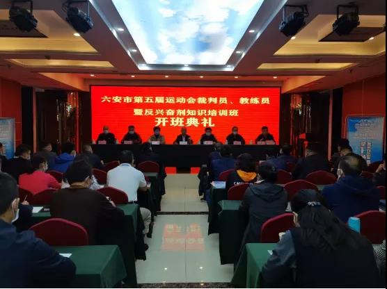 为坚决贯彻落实习近平总书记系列指示批示精神,进一步加强六安市各体育项目裁判员、教练员队伍建设,保障青少年运动员纯洁体育发展,10月12日,安徽省六安市举办第五届运动会裁判员、教练员暨反兴奋剂知识培训班。