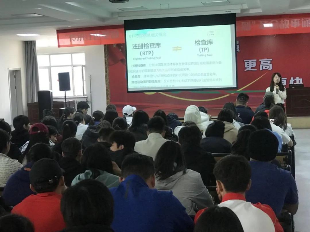 4月11日,自治区重竞技运动中心邀请自治区反兴奋剂中心国家级纯洁体育教育讲师张丽琴进行了题为《运动员行踪信息申报》的教育讲座,200余名运动员、辅助人员参加。