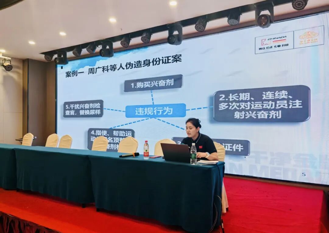 9月2日,中国跆协组织参赛人员举行反兴奋剂教育讲座。新疆维吾尔自治区反兴奋剂中心应邀派出国家级纯洁体育教育讲师王晶晶前来授课。王晶晶老师讲课的主题是《以案为鉴,预防和避免兴奋剂违规》,聚焦兴奋剂违规典型案例,通过生动的案例为所有人员敲响警钟,倡议严防兴奋剂风险,坚守反兴奋剂底线。