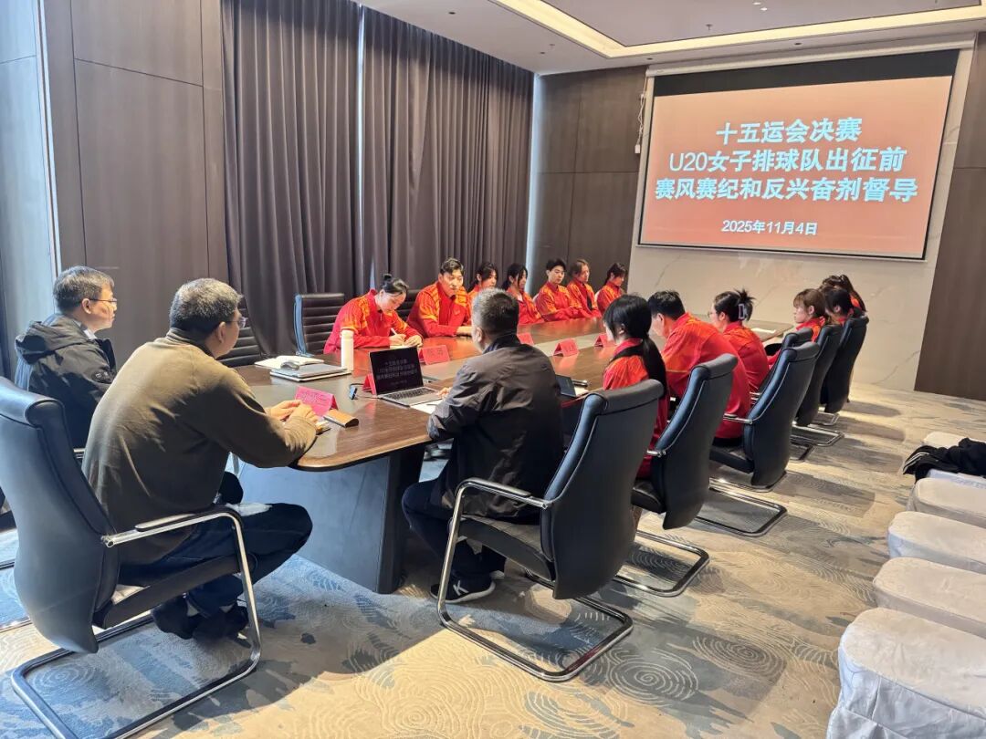 为护航江西省球类项目联办队伍备战第十五届全运会决赛,强化各参赛联办队伍的赛风赛纪意识,筑牢反兴奋剂防线,2025年11月3日至4日,省体育局备战办副主任袁茂林、省球类运动管理中心副主任姚承三与专项督导组一行,先后赴上饶、南昌两地,对U20女子排球队、三人制男子篮球队及U22五人制男子篮球队开展赛风赛纪暨反兴奋剂专项督导工作。