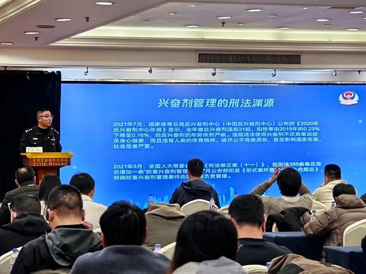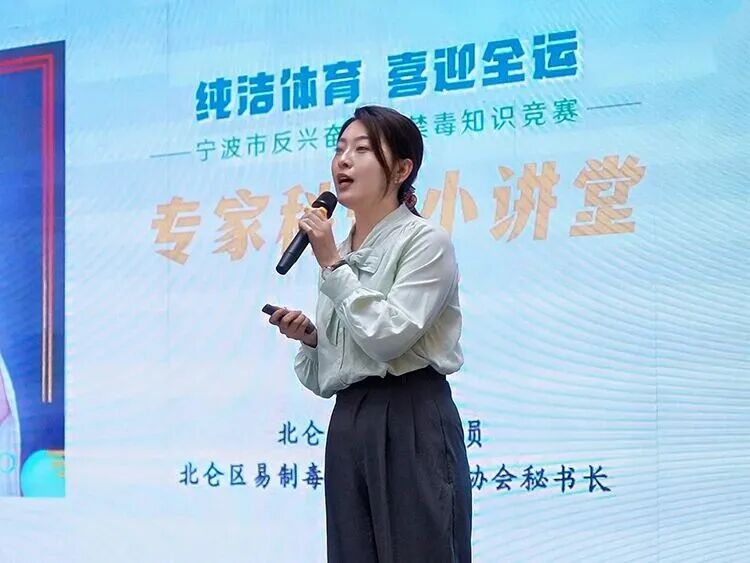 为提升培训的针对性与实效性,培训邀请宁波市镇海区公安分局禁毒大队杨志同志、浙江省纯洁体育教育讲师张冠男授课。杨志同志结合禁毒工作实际,通过典型案例剖析,深入解读了禁毒与反兴奋剂工作的内在关联及实践要求;张冠男则聚焦业余训练场景,围绕反兴奋剂工作要点、政策法规应用等内容展开详细讲解,为参会人员提供了兼具理论高度与实操价值的指导,有效提升了参会人员的专业素养、禁毒与反兴奋剂意识。