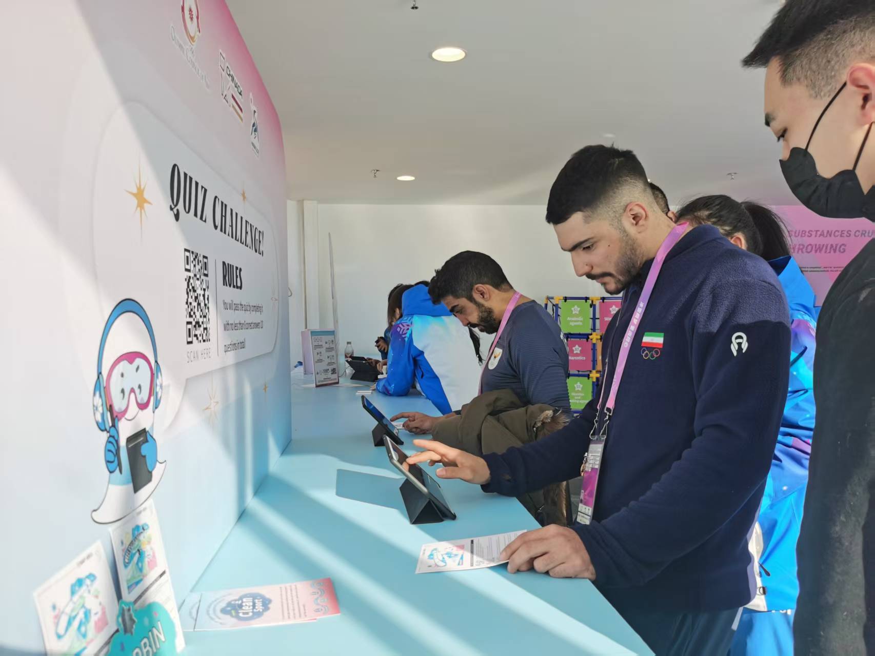 开幕以后,他们就在拓展站协助工作,一直持续到闭幕前。由于他们的运动员背景,了解运动员对反兴奋剂知识的具体需求,能更好地引导运动员参与教育活动。