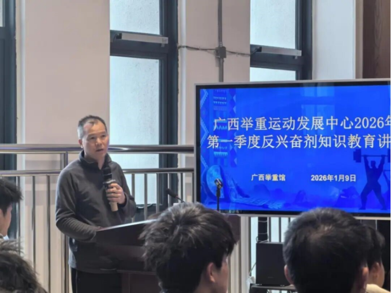 为深入贯彻落实国家体育总局、自治区体育局及省反兴奋剂中心关于反兴奋剂工作的系列战略部署,将“纯洁体育”理念深度融入举重后备人才培养全过程,筑牢举重项目竞技公平底线,守护体育事业纯洁底色,拿干净道德金牌,1月9日,广西举重运动发展中心在训练馆举办2026年第一季度反兴奋剂知识教育讲座。中心全体教练员、运动员参加讲座,以专业学习强化责任担当,以思想自觉、政治自觉和行动自觉抵御违规风险,为培育兼具竞技实力与道德素养的举重人才夯实根基。